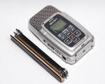 Here are some photos of a shock mount that I fabricated for a Zoom H2 recorder. Shock mounts are used to help isolate microphones handling vibrations. There are currently no commercial shock mounts for the H2, but I wanted something that I could use with a handle (to use similar to an interview microphone), or with the H2's stand (to put on a stage and provide some isolation from actor footfalls). My design goal was to create a shock mount frame that I could fold up very compactly for transport, yet would be rigid in use. Click on the small photos for larger images. The horizontal bar is aluminum channel, tapped to 1/4"x20 thread for tripod mounting. Although there really is only need for one tapped hole, I made three... in case I manage to strip one of the threads. The vertical bars are flat aluminum stock, that have been notched (as one would do for a half-lap joint) where they join to the horizontal bar (this keeps them vertical). Although I machined the notches with a mini-mill, you could also do it simply with a file. I've used black epoxy spray paint to coat the metal, in a small attempt to make the shock mount less conspicuous. Ideally, the aluminum would be anodized black, but paint will suffice for this experiment. I'm using two #64 3.25" x .25" rubber bands for the suspension. I tried a couple of o-rings, but they didn't work as well. When the rig is folded, the rubber bands fit nicely in the aluminum channel, keeping everything together. When I first build the mount, black rubber bands were backordered... I finally was able to get some a few months later, and they're in the first couple of photos. The photos below show all the parts, and how the joints work. The screws tighten with a coin. I hope others find this useful. I've used the shockmount for recording interviews and also placed at the edge of theater stages to record plays. So far, it's worked flawlessly.