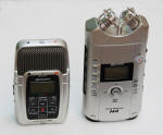 Recording on the goHere are some audio recorders I use for podcasting and other audio recordings. The Zoom H4, Zoom H2 and an iPod Nano with a XTremeMac MicroMemo recorder. The Zoom H2 just arrived, so the photos below are for size comparison. Each of these recorders work well... I'll likely sell the H4 (I bought it before the H2 was available) and keep the other two. I'll make notes and include external microphones (in particular the Rode Stereo VideoMic) soon. Click on the small photos for larger images.