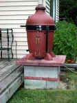Base for a #5 KamadoA year ago, we gave our friends in Michigan a #5 textured Kamado. They've been using it faithfully, and during a recent visit, we decided to rework the installation. Click on the thumbnail photos for larger images. When we originally installed it, they wanted to keep the "K" off of their wooden deck, so as to minimize the smoke hitting the house (they also sometimes put a tent over the deck). The photo above shows the K on a platform we made last year. It consisted of four 8 x 8 x 16" cement blocks with four 18 x 18" red patio stones on top. This was a pretty good arrangement in that it provided about 10 inches of extra height, so there is less need to bend over when tending the grill (it brings it close to the height of a #7 K). However, the lady of the house pointed out that it was a big step down from their deck to the grass, and she'd like the dome and bands turned towards the deck so she wouldn't need to step down. I like the idea of not stepping down, but simply turning the cooker to face the deck would mean bending over too much, so we gents took it as a little engineering challenge. A trip to the local home center, and about 30 minutes worth of assembly made for a revised base that makes it much more convenient to use their K. We used the existing cement blocks, and moved them closer to the deck and leveled them (there is some sand underneath to simplify the leveling). We added an 8 x 8" block into the center, for a little more stability. Next we added a 24 x 24" patio stone, covering the first course of bricks. Adding the second course of new blocks was fast and easy, as everything was already smooth and level. Another 24" stone was placed on top of the second course. We put the 16 x 16" patio stones back on top to make a wider base with an overhang. We also decided to put some construction adhesive under the top stones to minimize them shifting around. We wrestled the #5 onto the new platform, turning the entire cooker so that it faces the patio. We are all pleased with this new arrangement. The grill is now at a very comfortable height. The cooker is level, stable, and the materials are inexpensive and fire resistant. A side benefit is that the thermometer is now visible from windows in the house. We also hung a couple of "S" hooks from the lower band bolts. These give a simple way of hanging tongs, grill brushes, etc. A second little project was to make a small "poker" to stir and position the coals, and clear any clogged air holes. I use a fireplace poker to stir mine, but it's a bit long for the #5... and the wooden stick they were using was getting shorter and shorter and shorter..... We got a piece of 36" x 5/16" round steel and bent it to form a handle. A piece of vinyl tubing was slipped over the handle for a cooler, more comfortable grip. The ladies enjoyed watching us men fuss with the projects. There must be something attractive about men hauling cement < vbg >. There was a reward waiting for us that evening. While we were at the home center, the ladies got ambitious and baked a lovely peach pie (I believe it was the first time I've ever eaten this kind of pie). Given that incentive, I'll haul concrete blocks anytime! If you have comments, please visit the Guestbook.