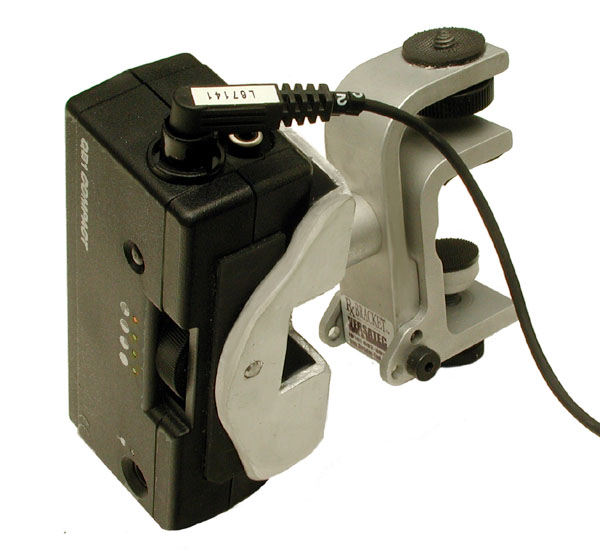 Battery BracketAlthough using AA rechargeable batteries is convenient, I decided that for some of the theatrical photographs I've been doing, I'd like an external battery pack. This will let me make hundreds of photographs on a single charge. I chose the Quantum Battery 1 Compact model, which is a 6 volt NiMH battery that recharges in 3 to 4 hours. Steve's Digicams has a pretty good review of the battery. Click on the photos for larger images. The battery is designed to screw into the tripod socket of the camera. However, I prefer using a Versatec RX flash bracket that clamps onto the lens of the Nikon 990. I wasn't happy mounting the battery under the camera because it doesn't clear the tripod head properly, and it puts extra weight under the LCD portion of the camera. So, I thought I'd try using the battery as a handgrip with the RX bracket. Although I typically use my black anodized version of the bracket, I'm showing the setup here with an earlier gray bracket because it's easier to see the details. When I'm finished tweaking the design, I'll paint or anodize the grip to match the black bracket. I took a piece of aluminum angle, cutting and grinding it to wrap around the battery... tapping a 1/4x20 hole for the battery's screw. I also cut a rectangular hole into the grip to let me easily spin the screw, and it make for a comfortable thumb rest. I needed to leave a little room between the battery and bracket side to accommodate the screw heads that attach the grip to the rest of the bracket. I also made one of the attachment hole elongates so I can tilt the handgrip forward or back. The battery mounts neatly by screwing it into the receiver hole. The side of the battery rests against the pads. The on/off switch and "battery fuel gauge" are easily accessible (the switch is nicely recessed, and will not be accidentally turned on/off). I may do some refining as I get to use the combination (I might, for example, shorten the standoff distance between the grip and the rest of the bracket), but so far, this looks like a nice way of mounting the battery. I'm currently only powering the camera with the battery, however there are two power outputs on the Quantum unit, so one could also be used to power an electronic flash at the same time. I'll make photos of the finished bracket when I get it all done. Copyright © 2000 by Zenreich Systems.