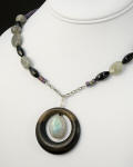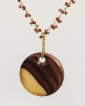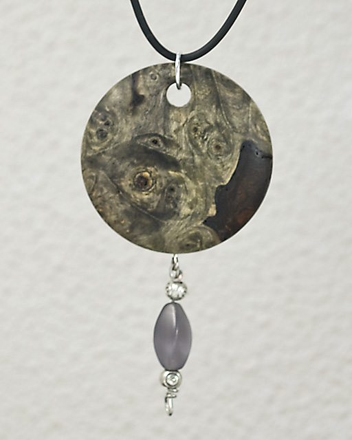 Padauk with glass disk, crystal and seed beads (Lyn B.) |